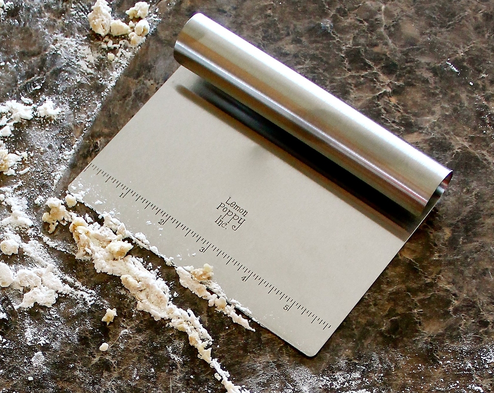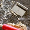 Every kitchen must be outfitted with a stainless steel dough scraper and cutter. It's really several tools in one. The scraper removes sticky dough from your floured work surface or scrapes away debris into the trash or compost bin. The comfortable grip makes it easy to cut rolled dough into equal portions using the 1" increments. Scoop up chopped veggies from your cutting board into a fresh salad. Serve brownies or lasagna right from the pan using the scraper to cut and serve each portion. Imported.