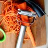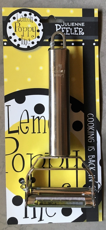 Stainless steel peeler, julienne peeler & noodle maker on a backercard